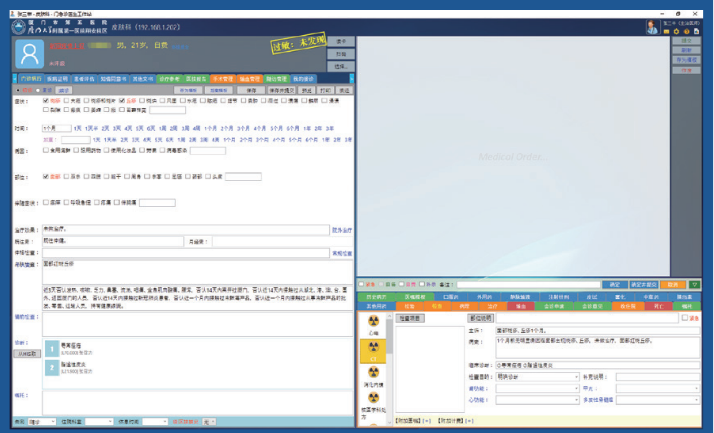 門(mén)診電子病歷系統(tǒng)采用一體化設(shè)計(jì),從刷卡、掛號(hào)到寫(xiě)病歷、開(kāi)醫(yī)囑都在一套系統(tǒng)中完成,門(mén)診病歷具有初診、復(fù)診和續(xù)診模式,支持CA電子簽名和時(shí)間戳,提交后生成具有可靠電子簽名的病歷文檔,滿(mǎn)足無(wú)紙化需要。